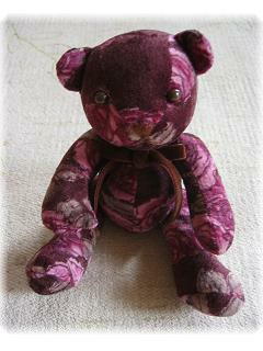 2003年9月 ノベルティー レベッカローズ柄 ベロアのクマちゃん エンジ |