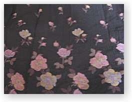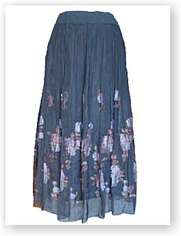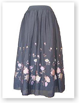 ![]() 2005年3月 品番:5EE0770-3 色:黒 価格:\19,000 柄名『カットジャガードボーダー』 ロングスカートです。丈80a お花の色は紫、ブルーで刺繍の裏が表になってます レーヨン、ナイロン、綿、ポリ・・・春夏向けの薄い素材 こちらの商品は2004年の晩夏物です |