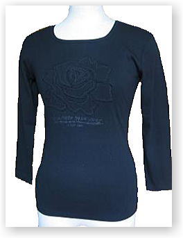 2004年12月SALE 品番:5EZ2210-8 色:黒 価格:\5,600 胸に綿の同素材の 薔薇アップリケ入り |