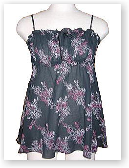 2004年5月 品番:4ES0600-4 色:黒 価格:\12,400 刺繍入り綿キャミソールです。 刺繍が白×薄ピンク×濃ピンクの 繊細なグラデーションになっています ![]() |
