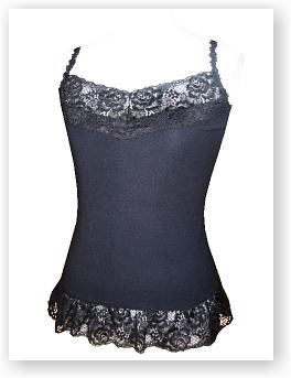 ![]() 2005年9月 品番:7EZ0170-4 色:黒(4-09) 素材:綿100% 価格:\6,600 薔薇レースフリルキャミです。 裾のレースがヒラヒラ〜と広がっています♪ 肩紐も薔薇で調節可能です |
