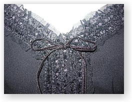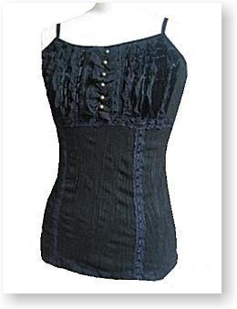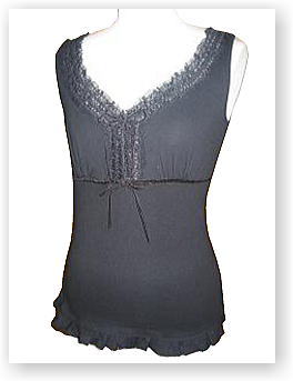 2005年10月 品番:7EZ1370-4 色:黒(4-09) 素材:アクリル、アンゴラ、ウール 価格:\8200 ヴィクトリアンなキャミソール!!!! キャミにしたら高いけれど、 レースやベロアが使われて上品なスタイル |