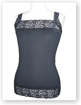 ![]() 2005年11月 品番:7EZ1050-5 色:黒(5-09) 素材:綿100% 価格:\5,600 レースが綺麗なタンクトップです レースはデコルテから背中側までずっと続いています |