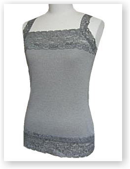 2005年1月SALE 品番:7EZ0080-5 色:グレー(5-08) 素材:綿・ポリエステル 価格:\5,200 綿・ポリ混のキャミは 肌触りしっとりで着易いです |