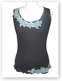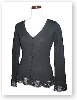 2005年4月 品番:6EK2550-6 色:黒 素材:綿100% 価格:\8,400 綿100%のリブ編み薄手ニットですので すごく着心地がいいです♪ レースの部分もとても綺麗 カーデとアンサンブルになります |
