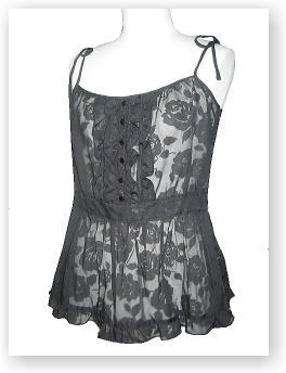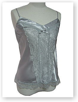 2006年9月SALE 品番:2ES0080-3 色:グレー(3-08) 素材:ポリエステル100% 価格:\9,400 レースが綺麗なサテンキャミソール |