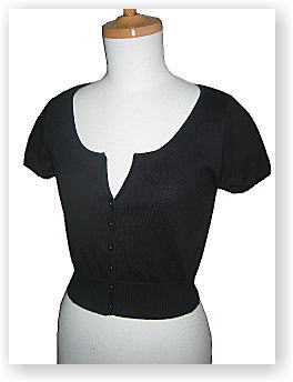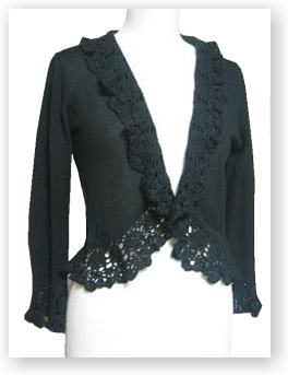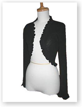 ![]() 2006年2月 品番:2EK0030-5 色:クロ(5-09) 素材:アセテート、ナイロン 価格:\12,200 フリルの少ないボレロが欲しくて購入。 縁取りフリル・レースも控えめで大人っぽいです |