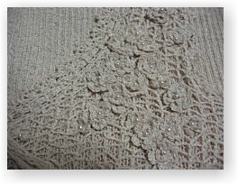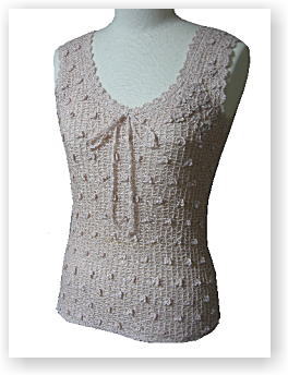 ![]() 2006年2月 品番:2EK2570-3 色:LTピンク(3-21) 素材:綿・レーヨン・麻・ナイロン 価格:\11,000 小粒パール付きノースリニット パール付きお花モチーフが全体にあります |