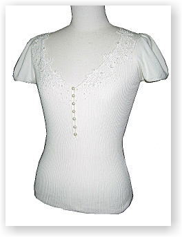 ![]() 2006年7月Sale 品番:2EK5120-2 色:キナリ(2-11) 素材:綿100% 価格:\10,400 この刺繍&ビーズのシリーズ良いです!! 着心地も可愛さも今年のNo.1☆ |