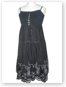 ![]() 2006年2月 品番:2ET3020-4 色:クロ(4-09) 素材:ポリエステル 価格:\18,000 スモーキーのネット素材ワンピです。 (レースが上下に付いたキャミソール付です) 胸元の飾りボタン、裾がアシンメトリー、丈が83cm |