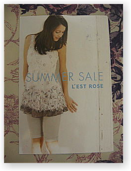 ![]() 2006年2月 2006春・夏のカタログをいただきました 真っ白い表紙の真ん中にLESTROSEと文字入りです 縦30×横20の大きめサイズです。 |
